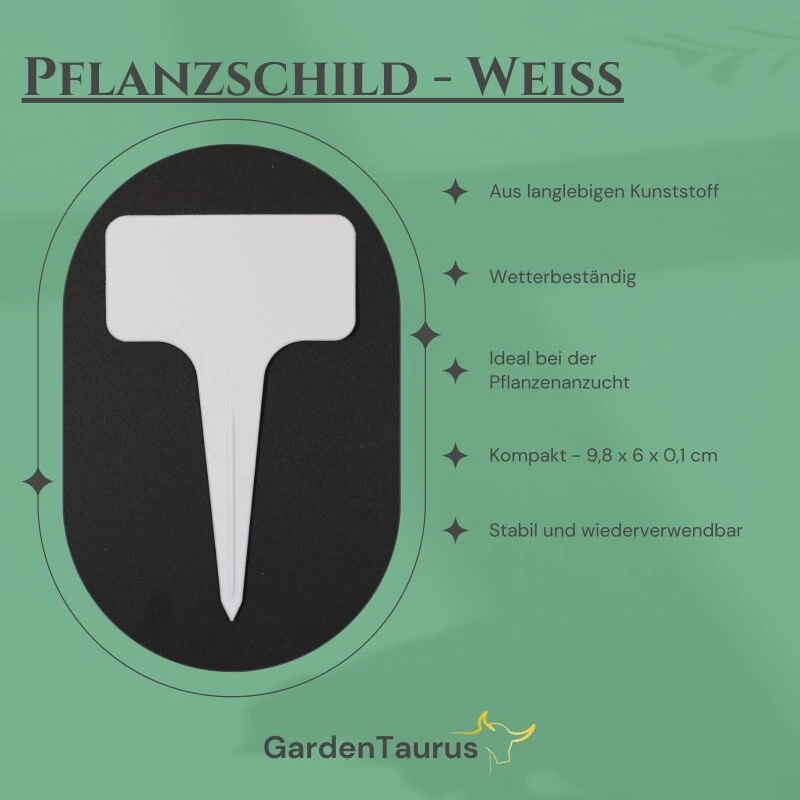 Die weißen Kunststoffschilder sind doppelseitig beschreibbar und bieten viel Platz für Informationen zu Ihren Pflanzen. Sie können die Etiketten zum Beispiel verwenden, um die Pflanzennamen, die Pflanzzeit, die Wuchshöhe oder die Pflegehinweise zu notieren.